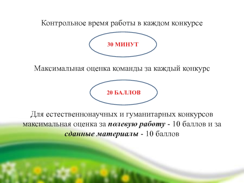 Для естественнонаучных и гуманитарных конкурсов максимальная оценка за полевую работу