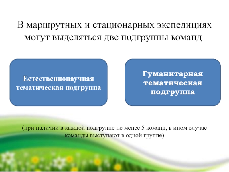 Слайд 3В маршрутных и стационарных экспедициях могут выделяться две подгруппы команд: