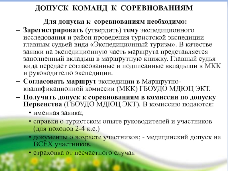 Слайд 19ДОПУСК КОМАНД К СОРЕВНОВАНИЯМ