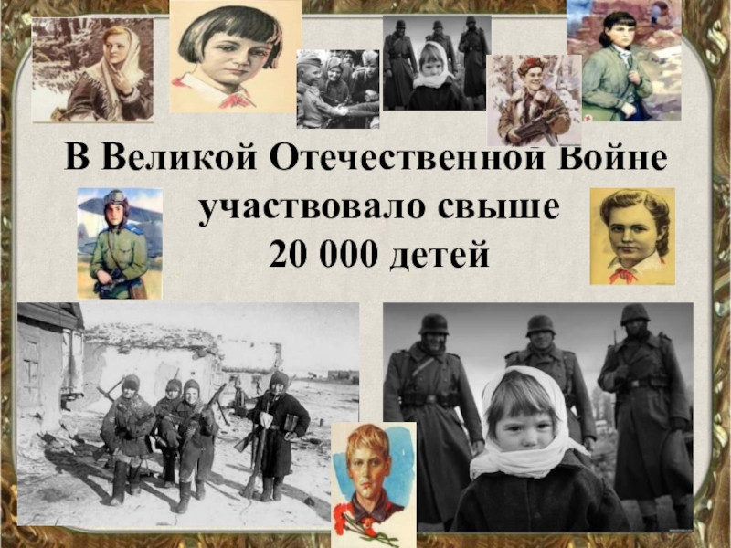 Слайд 7В Великой Отечественной Войне участвовало свыше 20 000 детей