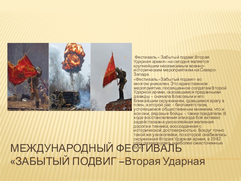 Слайд 3Международный фестиваль «Забытый подвиг –Вторая Ударная