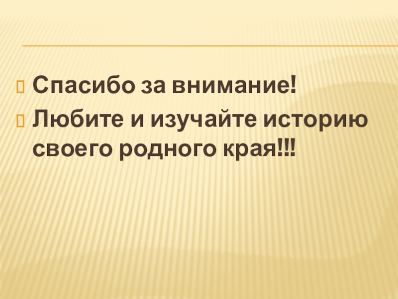 Спасибо за внимание!Любите и изучайте историю своего родного края!!!
