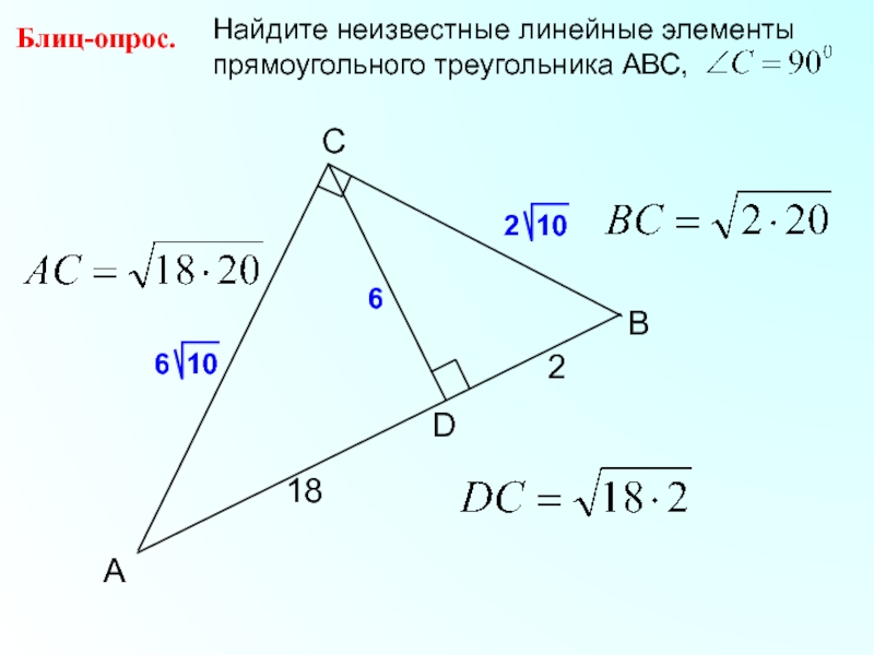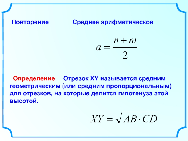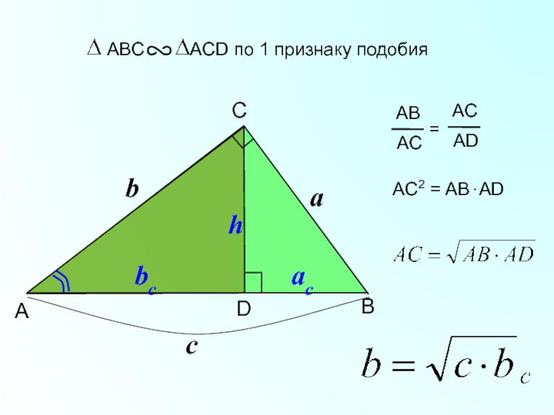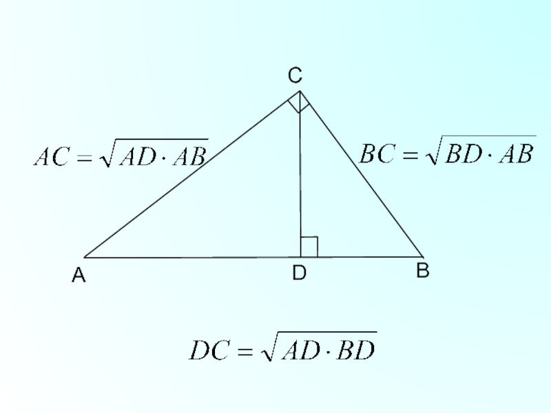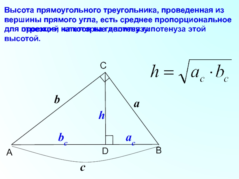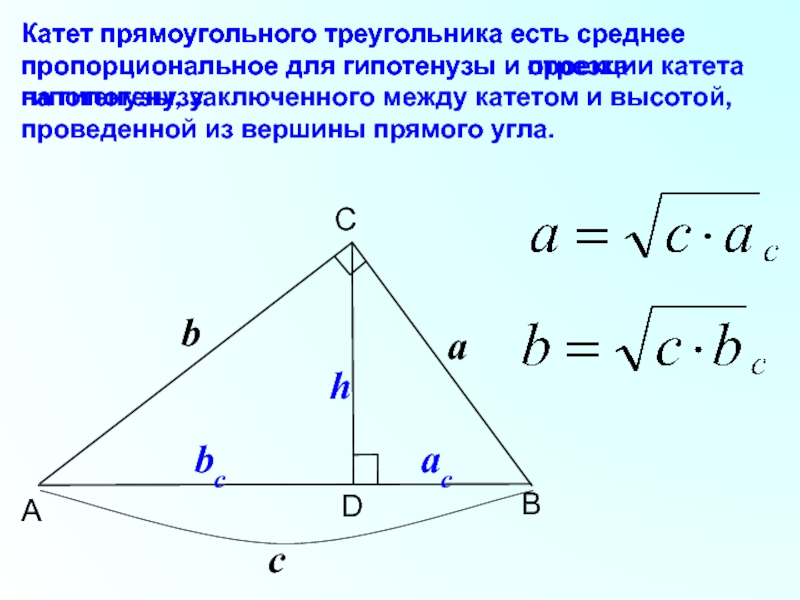 Катет прямоугольного треугольника есть среднее пропорциональное для гипотенузы и проекции катета на гипотенузу.