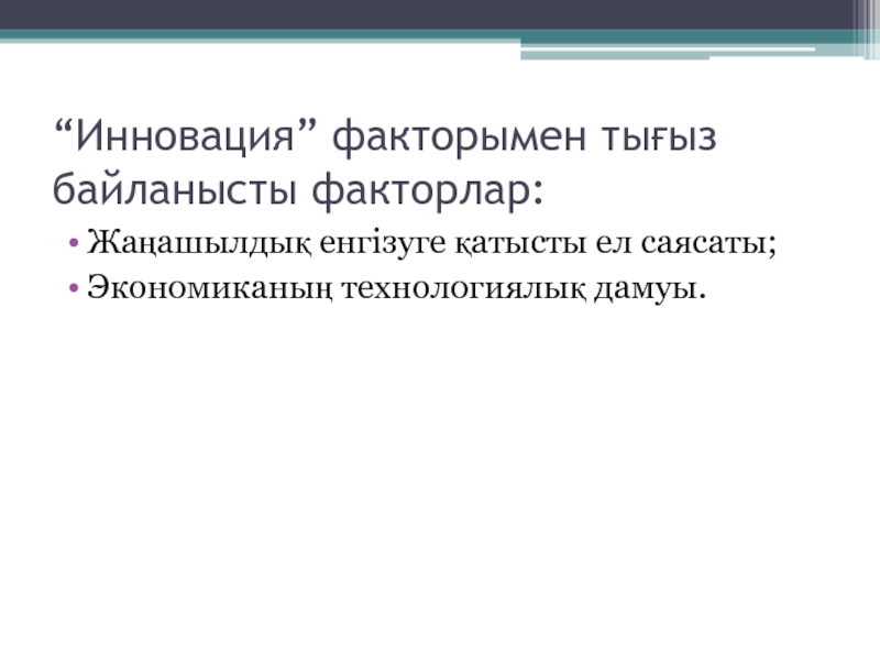 Слайд 8“Инновация” факторымен тығыз байланысты факторлар: