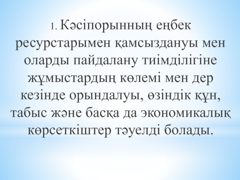 Слайд 21. Кәсіпорынның еңбек ресурстарымен қамсыздануы мен оларды пайдалану тиімділігіне жұмыстардың
