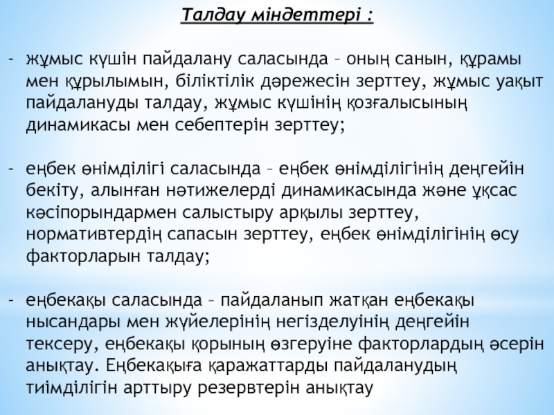 талдау. Еңбек өнімділігін талдау. Еңбек ресурстарын тиімді пайдалануын талдау.