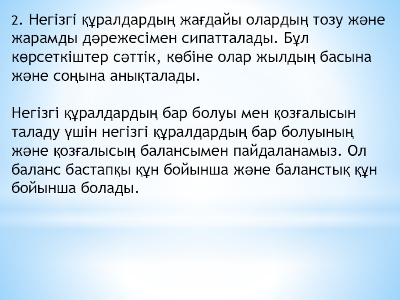 Слайд 72. Негізгі құралдардың жағдайы олардың тозу және жарамды дәрежесімен сипатталады.