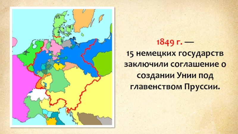 1849 г. —15 немецких государств заключили соглашение о создании Унии под главенством Пруссии.