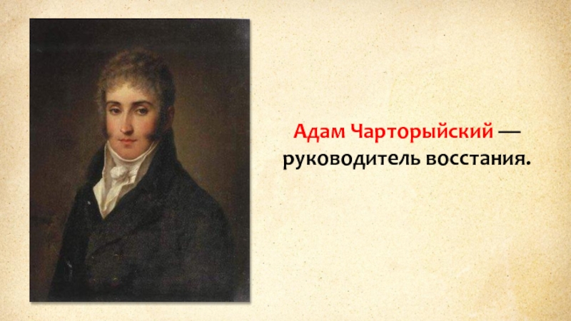 Слайд 7Адам Чарторыйский — руководитель восстания.