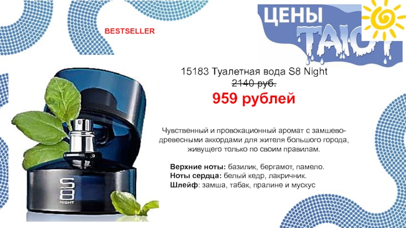 Базовая нота: амбра, мускус, сандал, ветивер, замша и табак.