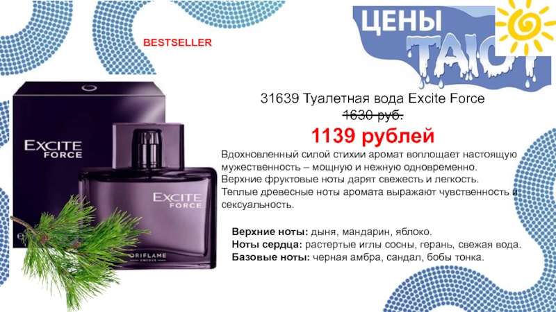 ананас, мятаНота «сердца»: лаванда, тархун, розмарин, можжевельник, дерево.