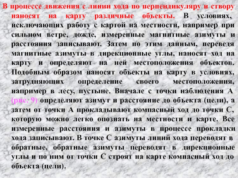 Слайд 72В условиях, затрудняющих работу с картой, например при плохой погоде,