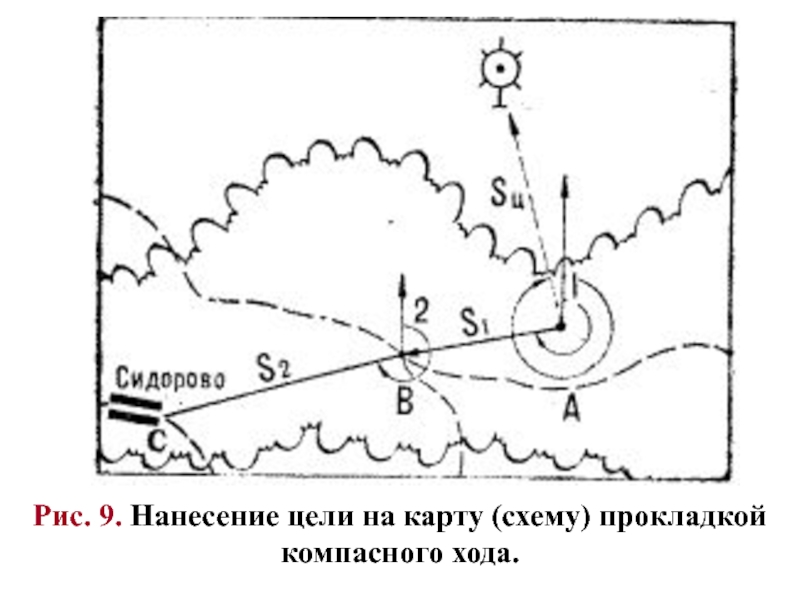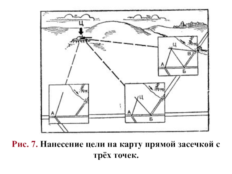 Слайд 71Рис. 13. Нанесение цели на карту прямой засечкой с трёх
