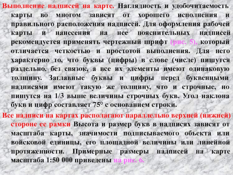 по карте необходимо в целях единообразия, четкости изложения различных данных