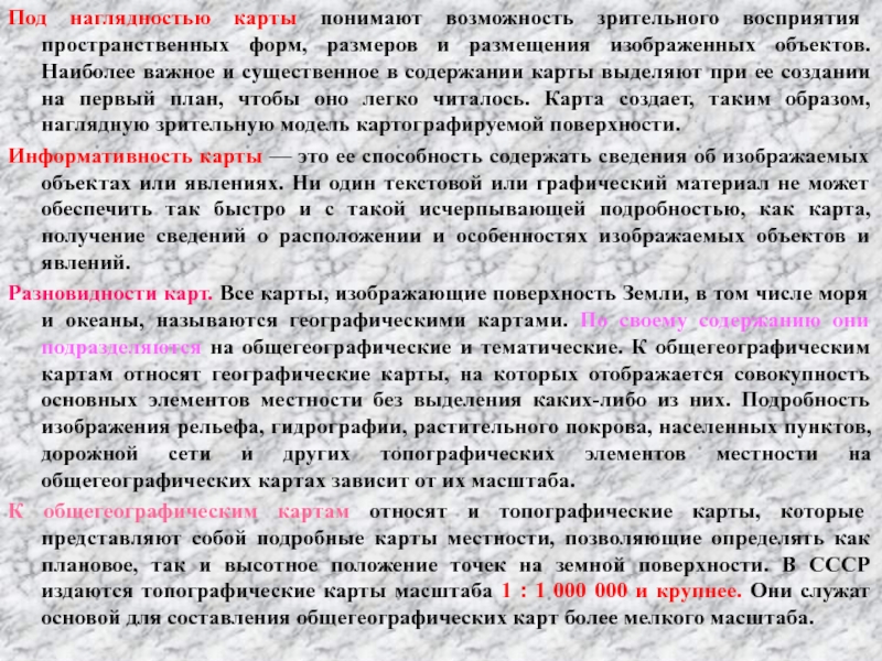 точное, подробное и наглядное изображение местных предметов и рельефа. Топографические