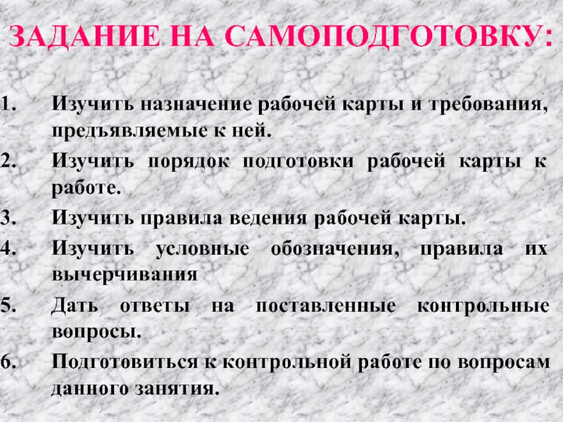 Изучить назначение рабочей карты и требования, предъявляемые к