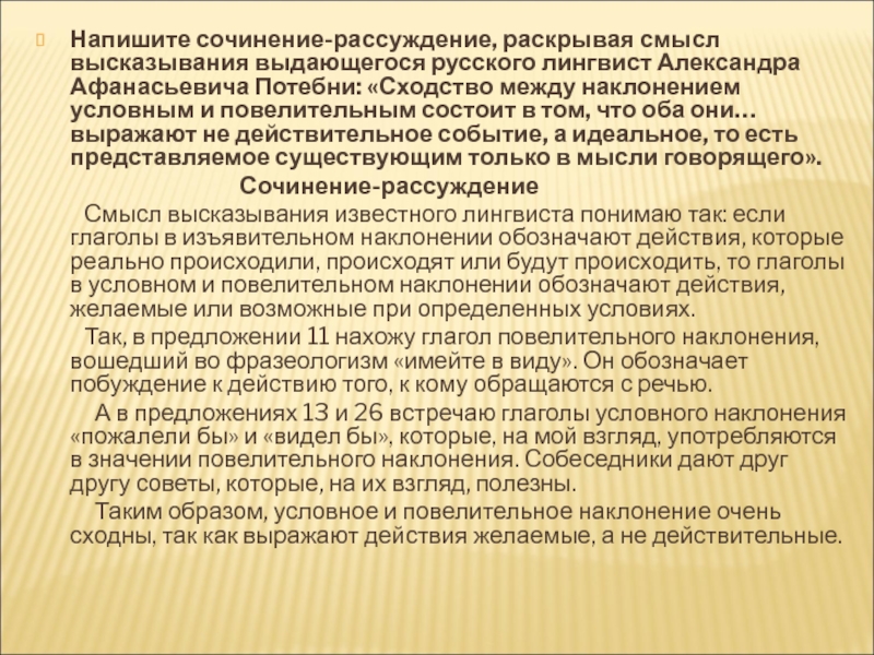 Слайд 21Напишите сочинение-рассуждение, раскрывая смысл высказывания выдающегося русского лингвист Александра Афанасьевича