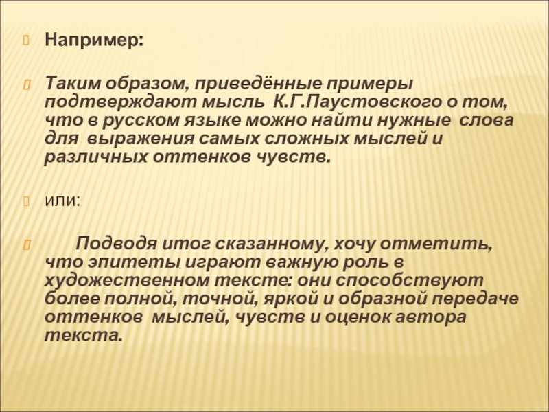 Таким образом, приведённые примеры подтверждают мысль К.Г.Паустовского о том, что