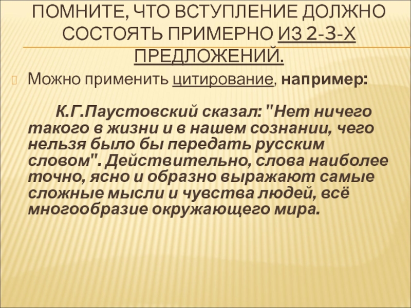 Слайд 9Помните, что вступление должно состоять примерно из 2-3-х предложений.