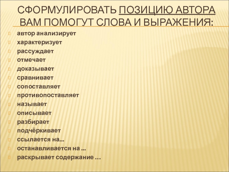 Слайд 7Сформулировать позицию автора вам помогут слова и выражения: