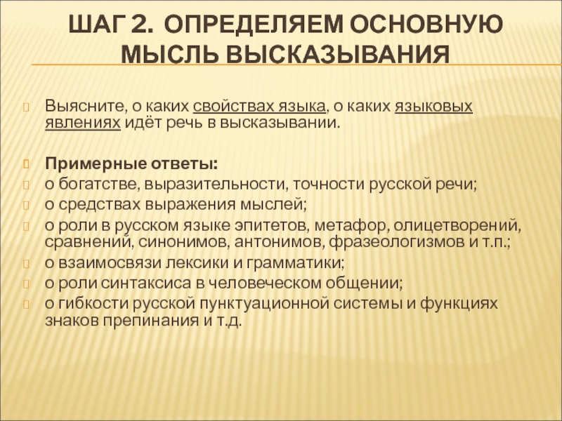 Слайд 5Шаг 2. Определяем основную мысль высказывания