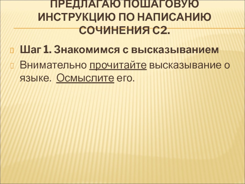 Слайд 4Предлагаю пошаговую инструкцию по написанию сочинения С2.