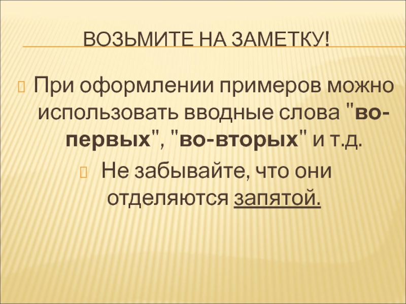 При оформлении примеров можно использовать вводные слова "во-первых",