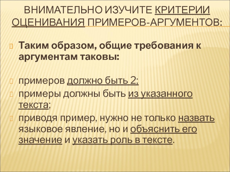 Слайд 13Внимательно изучите критерии оценивания примеров-аргументов: