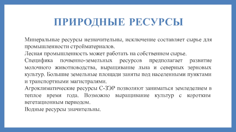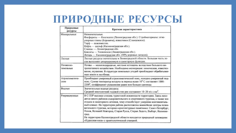 Слайд 10ПРИРОДНЫЕ РЕСУРСЫ