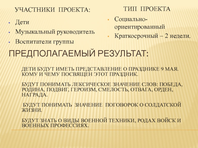Краткосрочный – 2 недели.