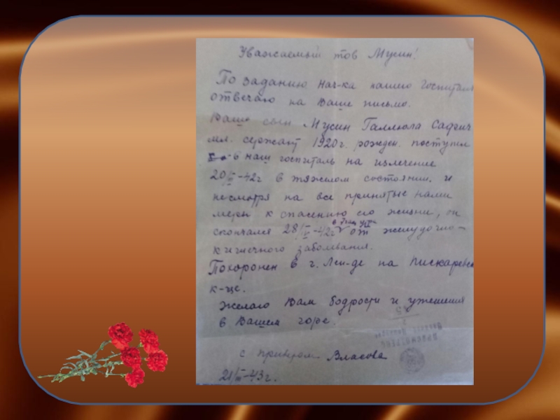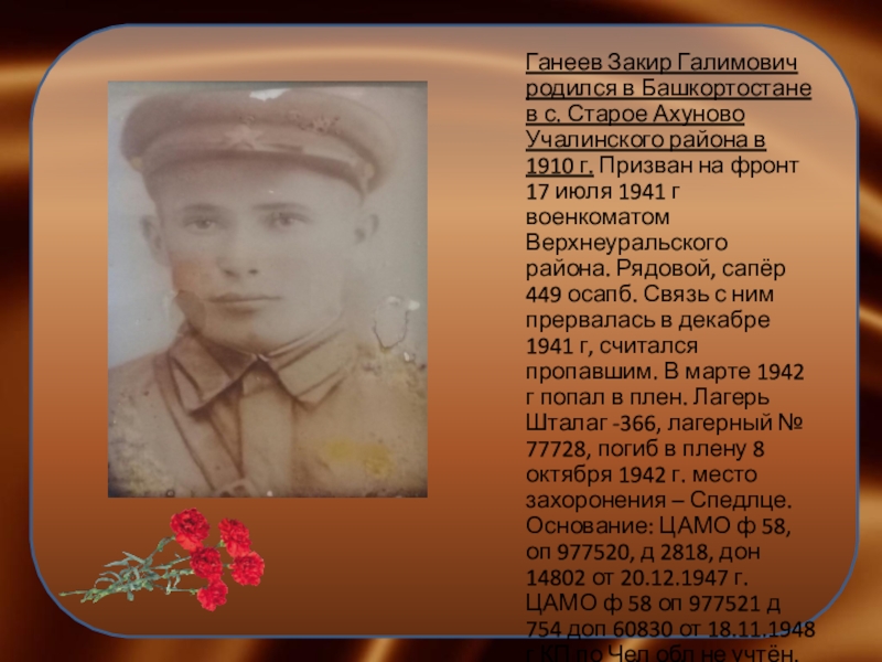 Слайд 7Мутагаров Хажиахмет Шарафутдинович родился в 1911 г. Призвали на фронт