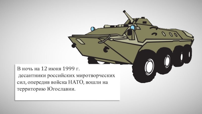 В ночь на 12 июня 1999 г. десантники российских миротворческих сил, опередив войска НАТО, вошли на территорию