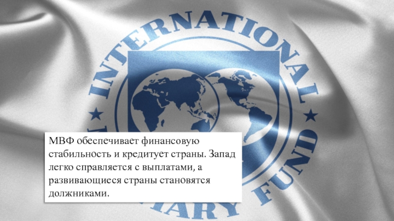 Слайд 13МВФ обеспечивает финансовую стабильность и кредитует страны. Запад легко справляется