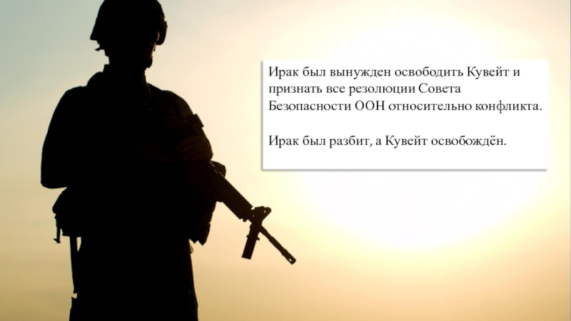 Слайд 20Ирак был вынужден освободить Кувейт и признать все резолюции Совета