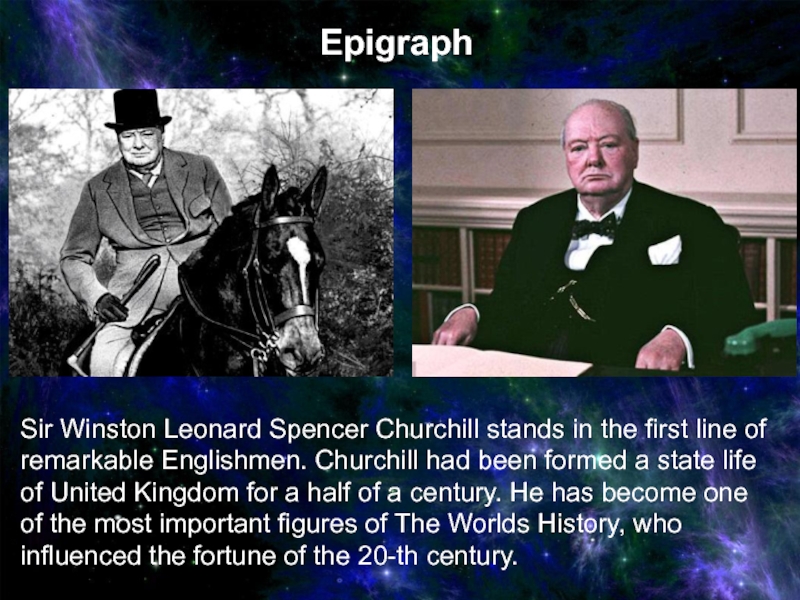 of United Kingdom for a half of a century. He has become one of the most important figures of The Worlds History, who influenced the fortune of the 20-th century.Epigraph