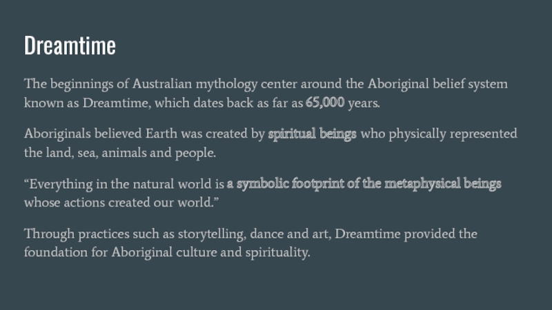 Through practices such as storytelling, dance and art, Dreamtime provided the foundation for Aboriginal culture and spirituality.