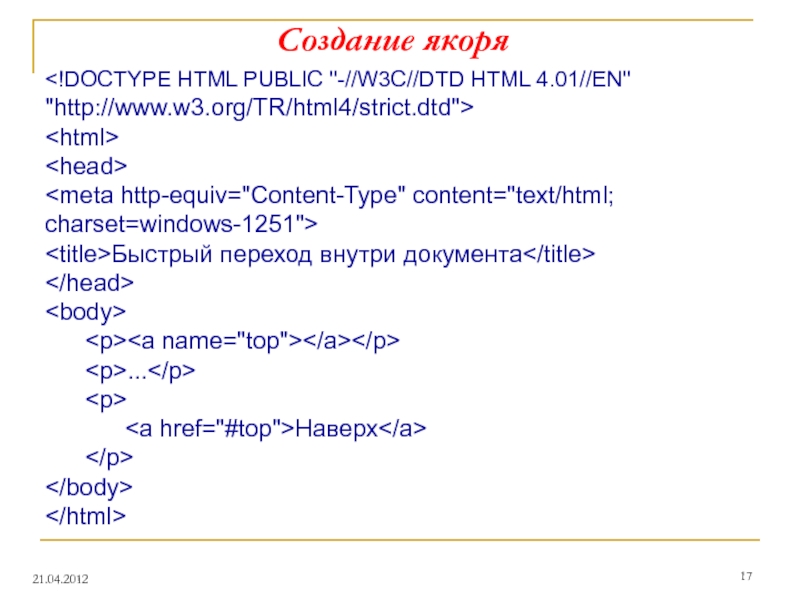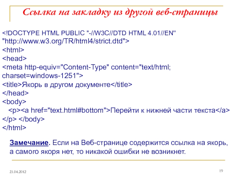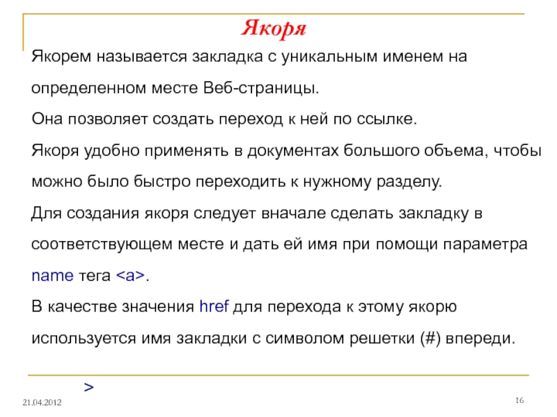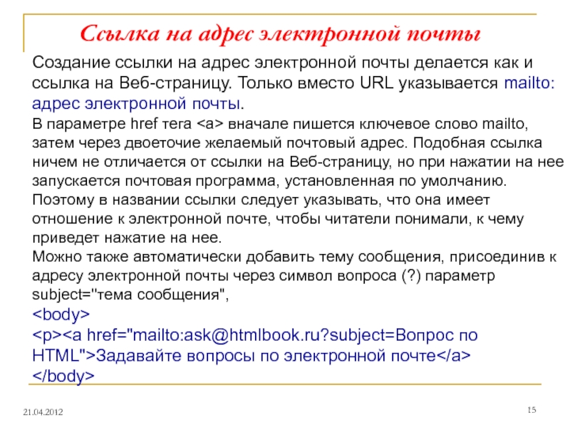 Для создания ссылки необходимо сообщить браузеру: