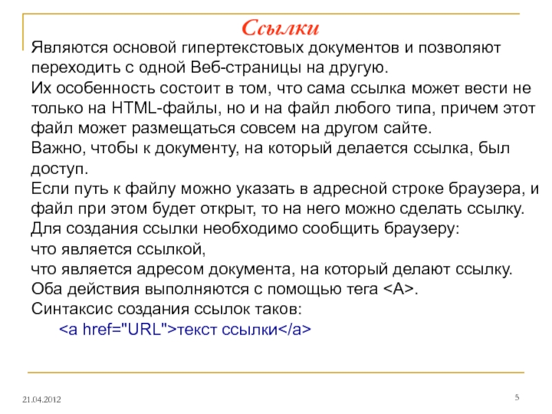может вести не только на HTML-файлы, но и на файл любого типа, причем этот файл может размещаться совсем на другом сайте.