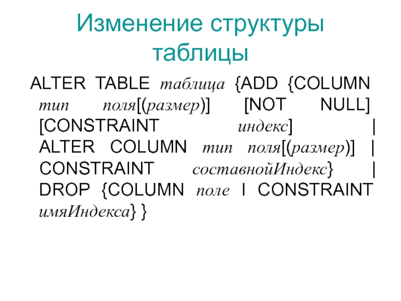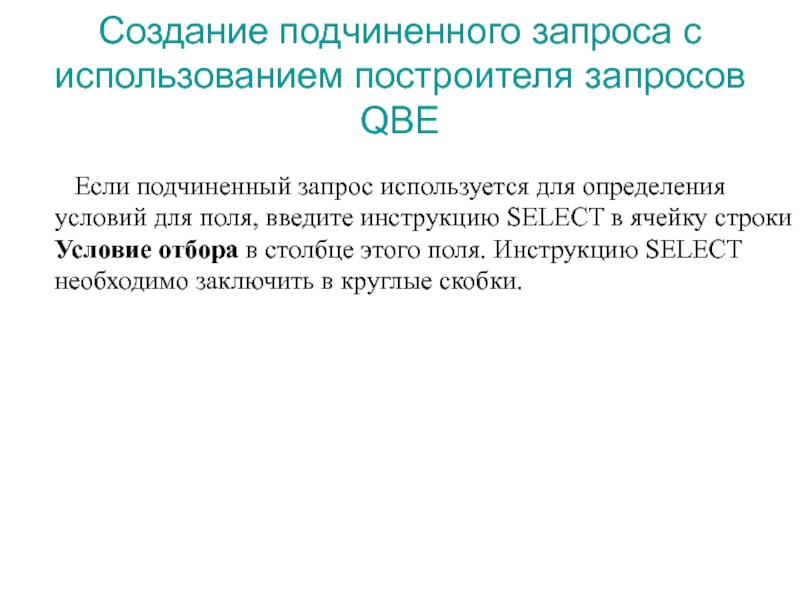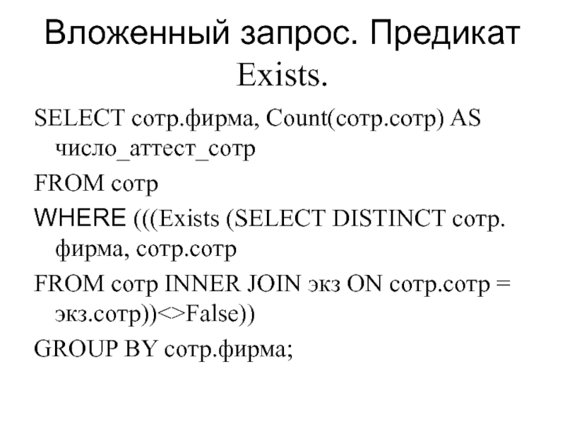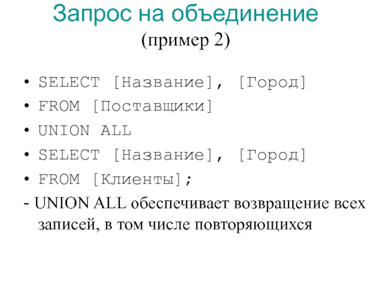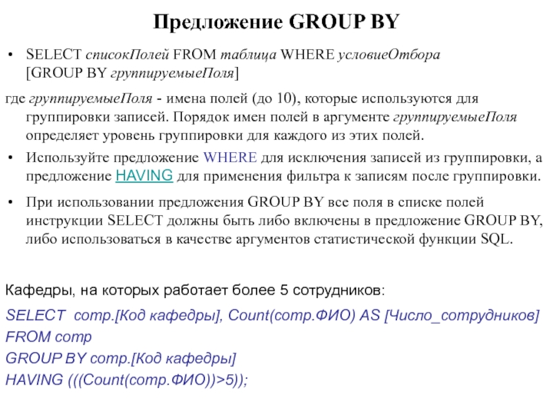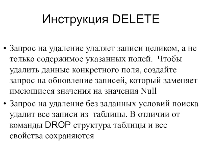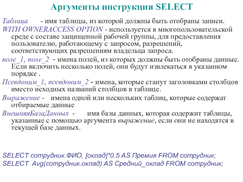 используются в Microsoft Access SQL Microsoft Access SQL использует зарезервированные слова и средства, не поддерживаемые ANSI SQL