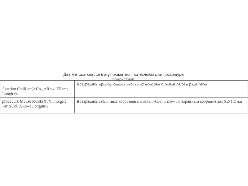 Слайд 7Два метода класса могут оказаться полезными для процедуры прорисовки: