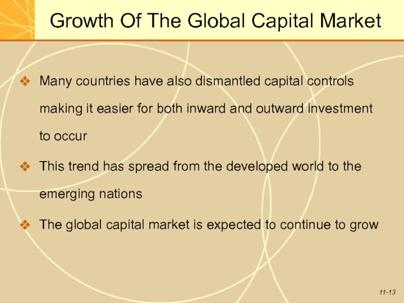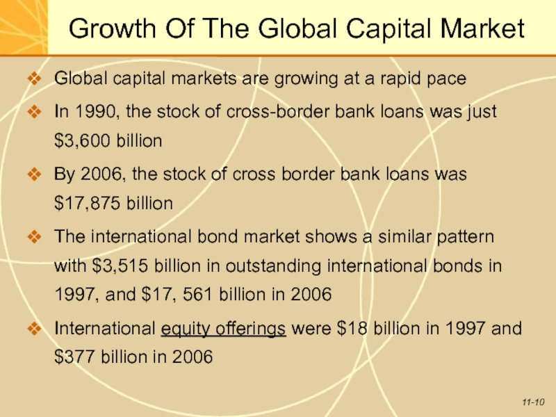 Слайд 11Growth Of The Global Capital Market