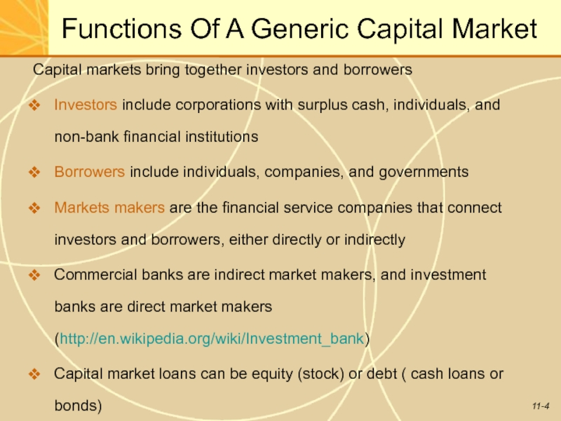 Слайд 4Functions Of A Generic Capital Market