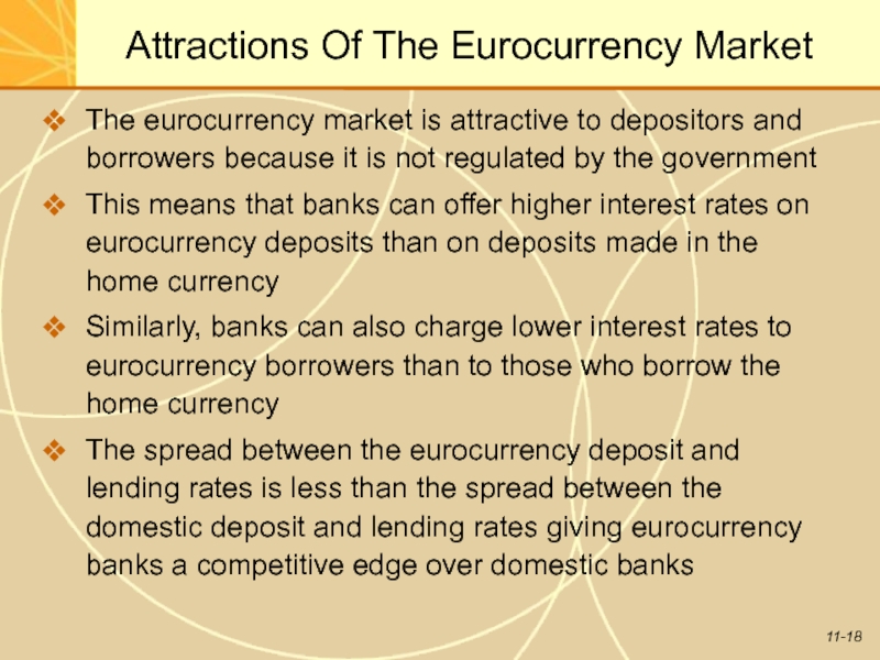 Слайд 18Attractions Of The Eurocurrency Market