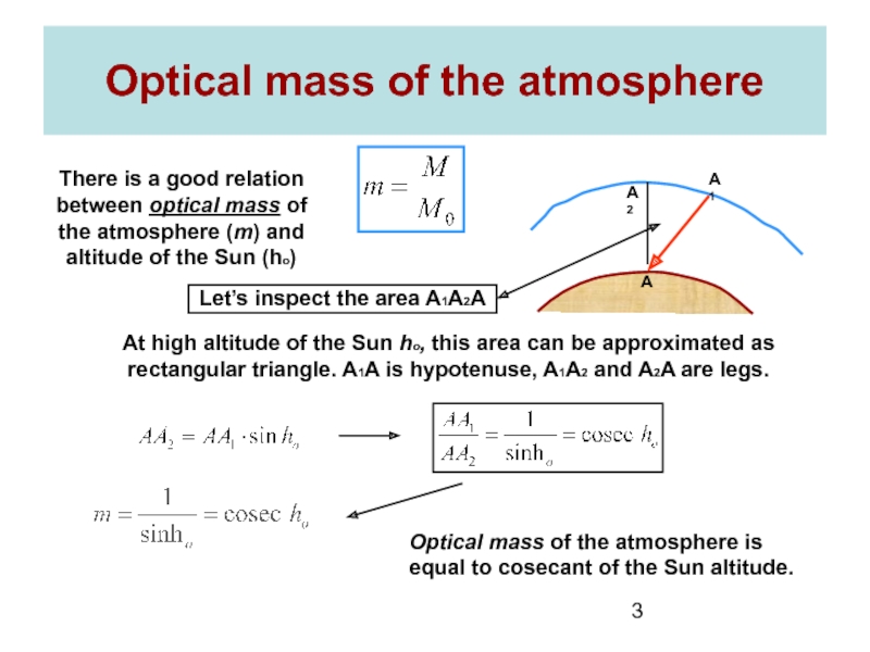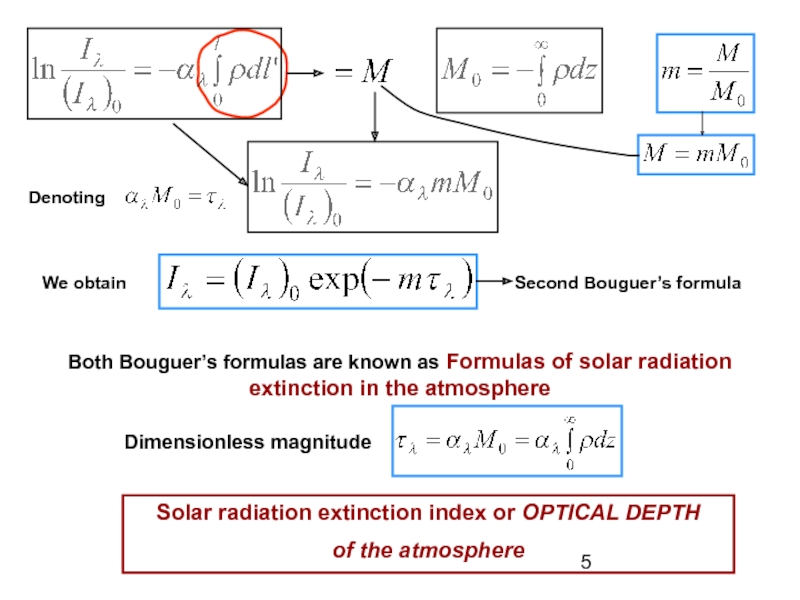 To obtain the value of the radiation flux at point A, the last formula is to be integrated from the top (A1) to the ground (A).