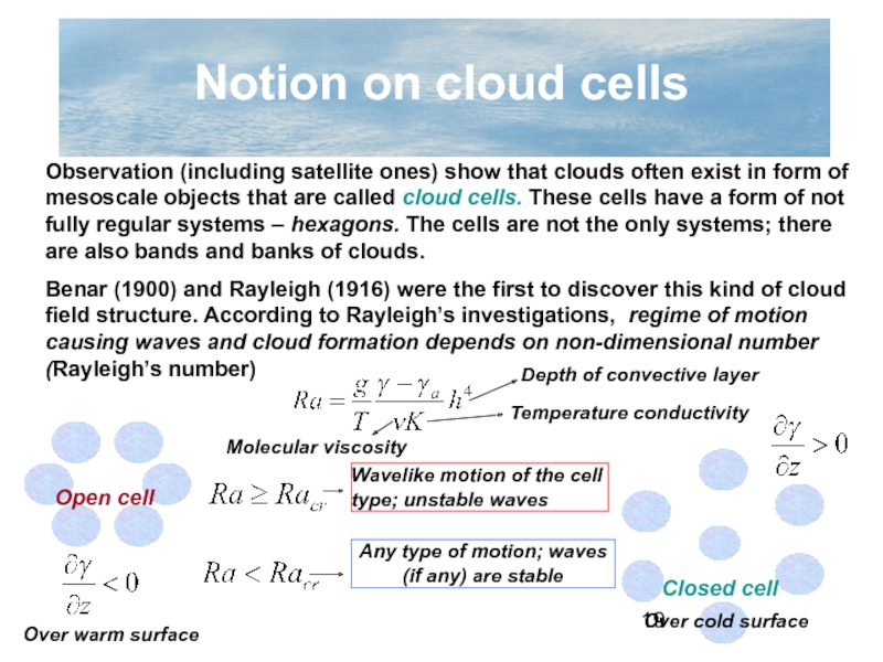 Stratification of the atmosphere (unstable stratification results in formation of lee vortexes and chaotic cloudiness appearance)