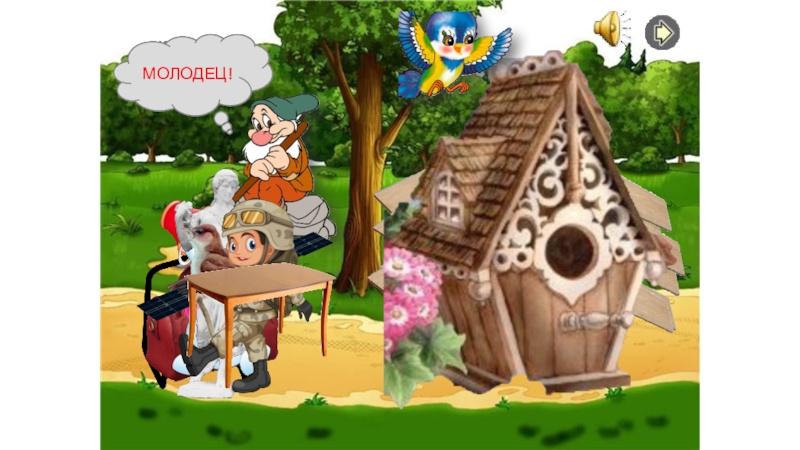 Слайд 8Помоги Крохотулю построить дом для птички.