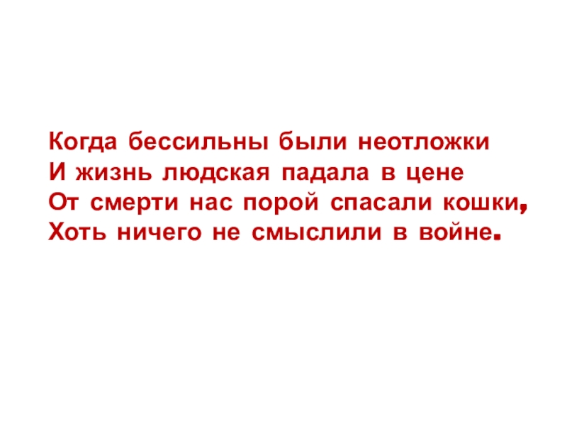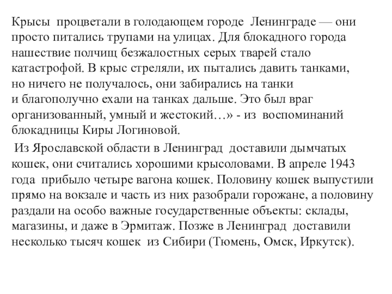 Слайд 23В дни блокады Ленинграда, кошки приносили своим хозяевам добычу, умирая