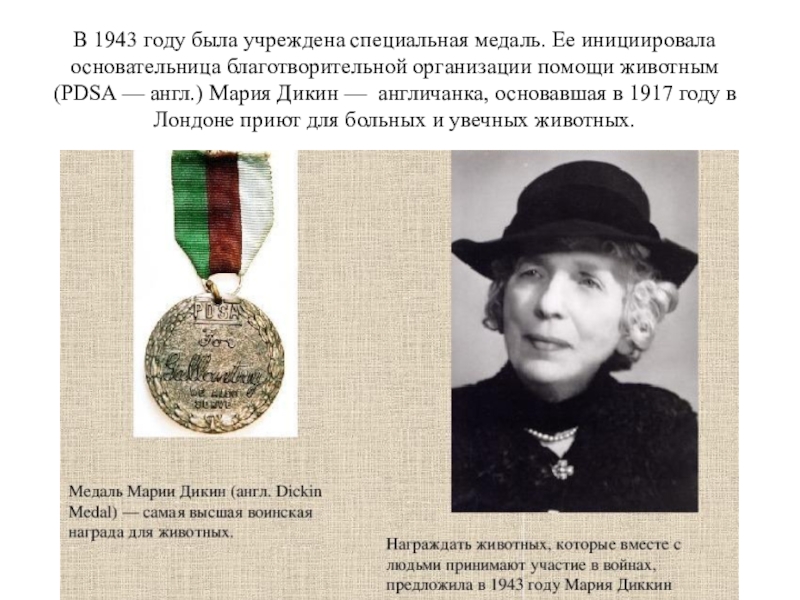 Слайд 3В 1943 году была учреждена специальная медаль. Ее инициировала основательница