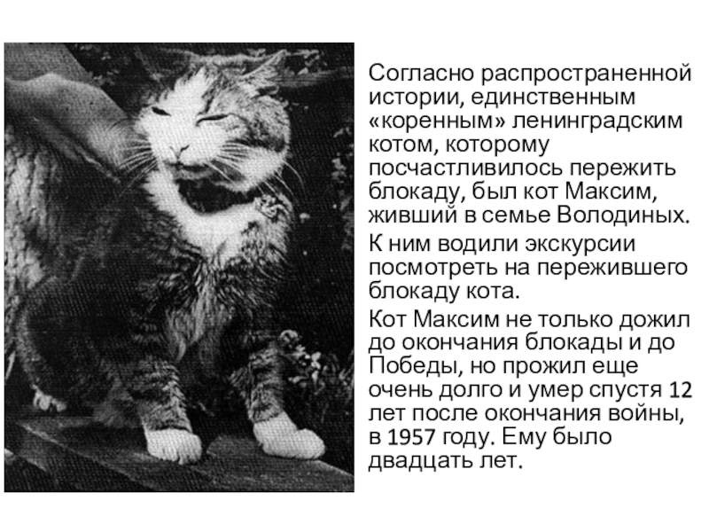 блокаду, был кот Максим, живший в семье Володиных.
