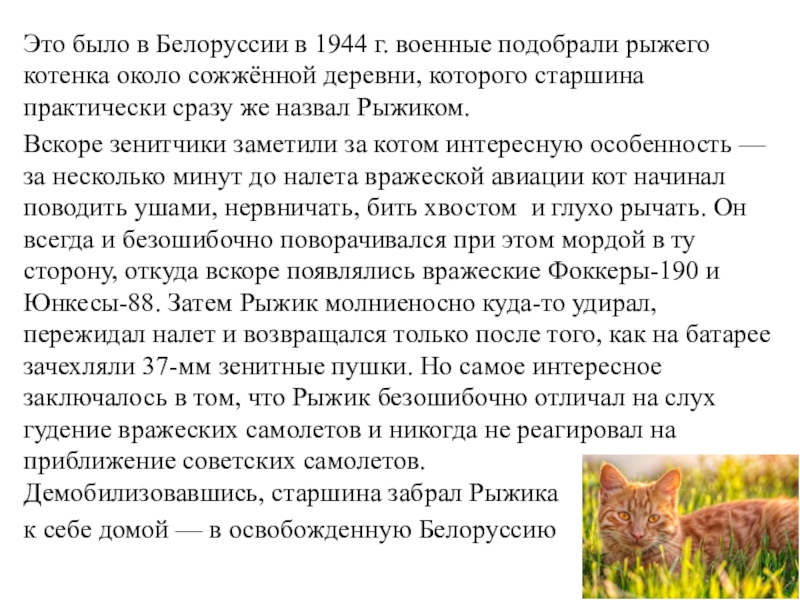 Слайд 14Это было в Белоруссии в 1944 г. военные подобрали рыжего